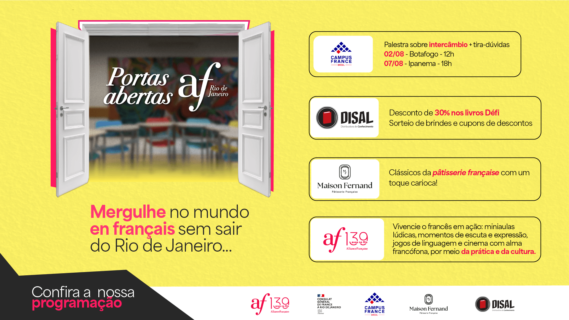 Turnê mundial da Francofonia com Ivan Kabacoff! A Aliança Francesa de Botafogo convida você para um encontro excepcional com Ivan Kabacoff, jornalista e apresentador do programa Destination Francophonie da TV5MONDE.Através das suas viagens pelos quatro cantos do globo, Ivan Kabacoff partilhará a sua experiência e as suas descobertas sobre a riqueza e a diversidade da […]