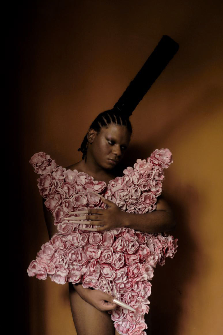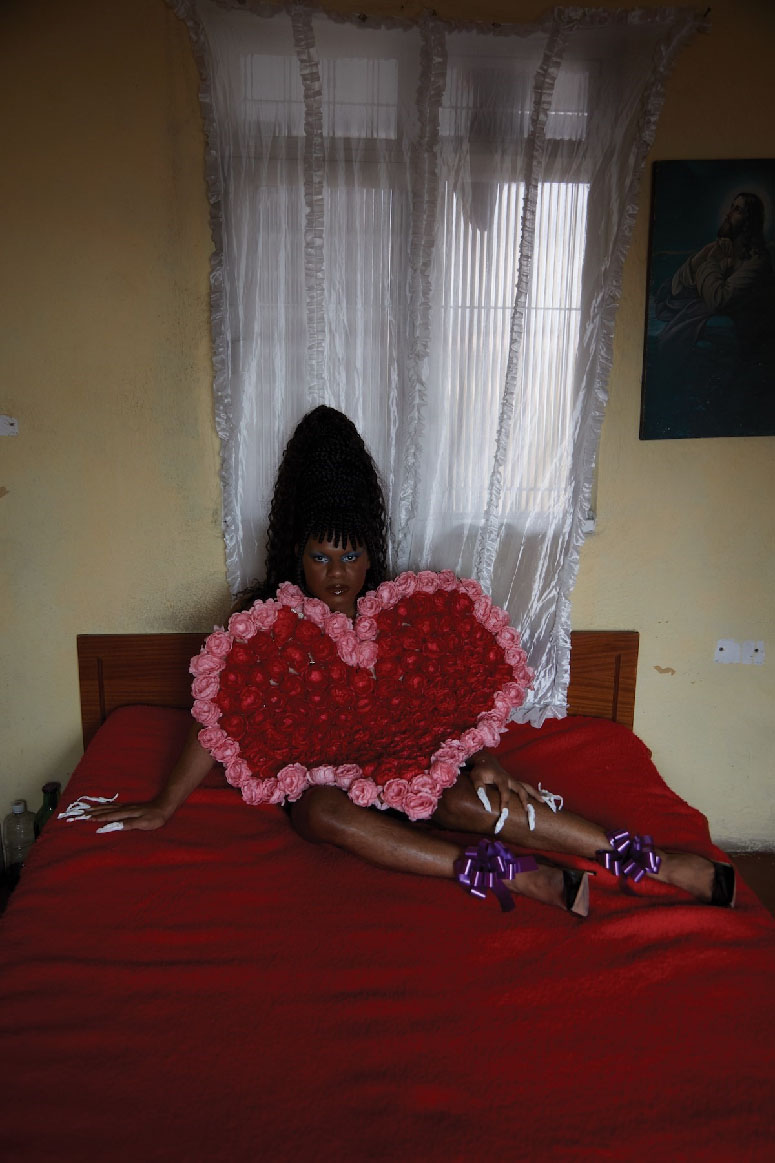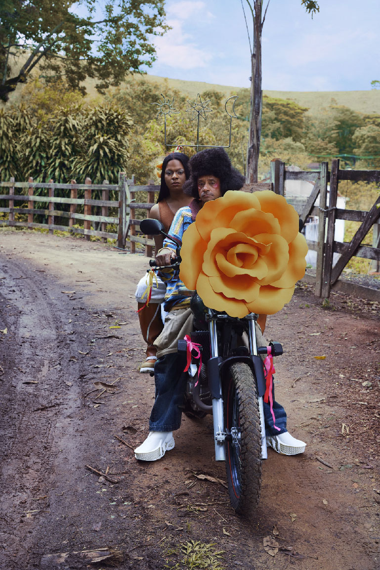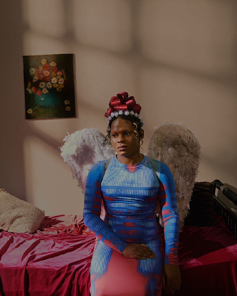 A Rose and A Prayer foi fotografado na cidade de Guarulhos, no sudeste de São Paulo. Ela representa um cruzamento de duas histórias a área desenvolvida perto do centro da cidade e as vielas que levam a uma favela. “O que um ser divino está fazendo ali, em frente àquelas cortinas baratas? O que os seres divinos podem ter a ver com paredes descascadas e mofadas? E com pisos sujos e objetos como pinturas e imagens religiosas deterioradas?”, pergunta Ode. “Crianças latinas, especialmente também negras e queer como nós, por um longo e inocente período, vivem estigmatizadas, mas dentro de nossas casas, podemos ser divinos.” Esses seres estão entre nós – basta apenas ousarmos reimaginá-los.